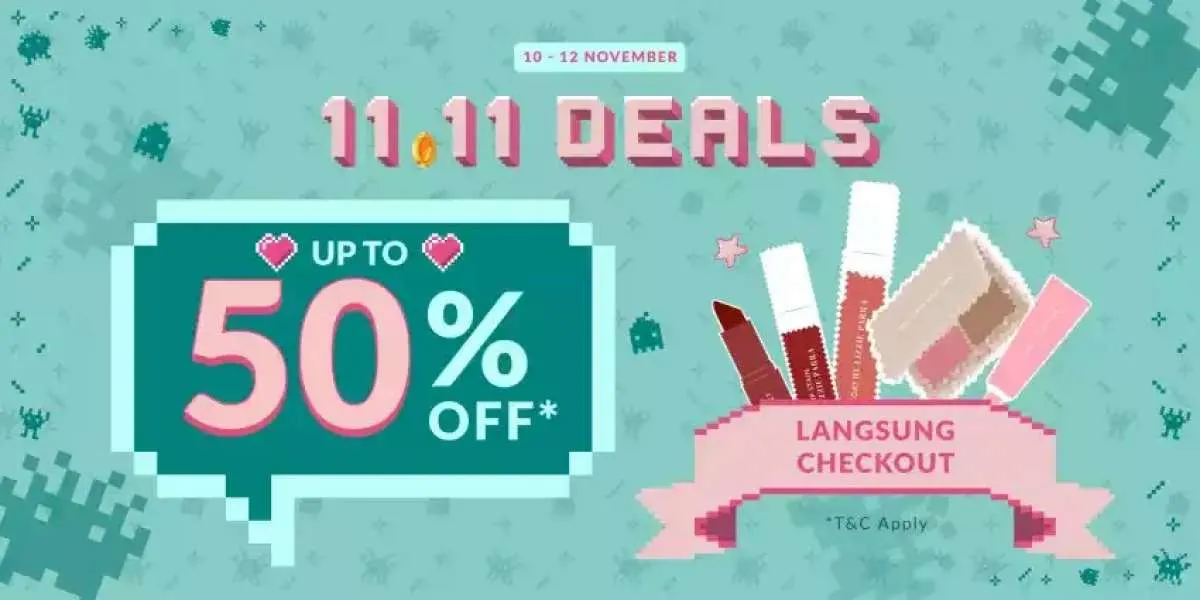 Promo 11.11 Deals ini menawarkan Diskon up to 50% Off untuk setiap pembelian makeup BLP yang tersedia.