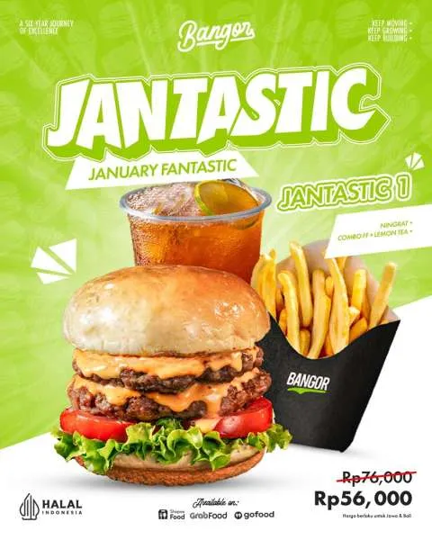 Selain itu, di Januari 2026 ini Burger Bangor juga ada promo Jantastic yang menawarkan paket hemat lengkap. Ada tiga pilihan paket mulai dari Rp 56.000 saja.