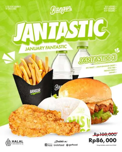 - Jantastic 3 (Rp 86.000): BFC Paket 1 Ayam Bangor Crispy + Pitik Fire + French Fries + Drinks