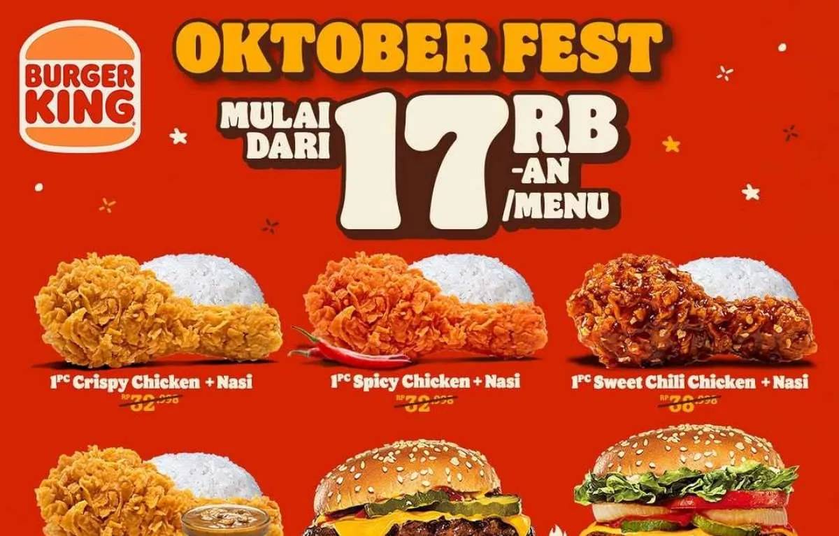 Dikutip dari Instagram Burger King Indonesia, promo Oktober Fest hadirkan 11 pilihan menu mulai Rp 17.000-an berikut:
