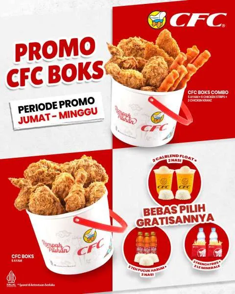 Selain itu, di Januari 2026 ini, Anda kembali bisa menikmati promo CFC Boks lo. Inilah waktunya untuk makan ayam goreng CFC sepuasnya dengan harga yang lebih hemat, bahkan dapat menu gratisan.