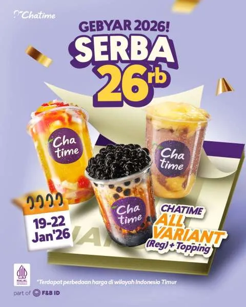 Dikutip dari Instagram @chatimeindo, mulai 19 Januari 2026, Anda bisa menikmati promo Gebyar 2026. Beli semua varian Chatime ukuran Reguler yang sudah lengkap dengan topping hanya Rp 26.000 saja. /2026/01/18/1038737315p.jpg)