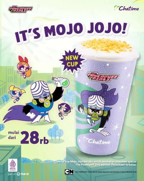 Selain itu, koleksi juga cup terbaru dari Chatime, yakni cup Mojo Mojo dari edisi The Powerpuff Girls. Anda bisa menikmati minuman favorit dengan cup baru ini mulai Rp 28.000 saja.