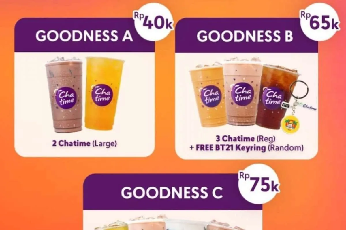 Pada Promo Chatime terbaru November 2022, ada Paket Sale-Brate Goodness dengan penawaran yang berlaku hingga 20 November 2022.