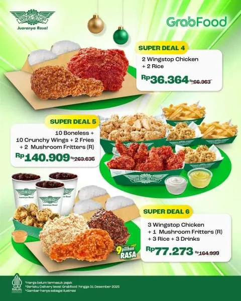 - Super Deal 4 (Rp 36.364): 2 Wingstop Chicken + 2 Rice