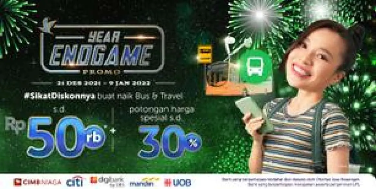 - Kupon diskon 30% (potongan s.d. Rp 50.000) dengan transaksi minimum Rp 100.000 dalam satu No Pesanan. Berlaku untuk semua Bus & Travel.