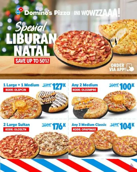 Selain itu, Domino's Pizza juga masih ada promo Spesial Liburan Natal selama Desember 2025. Anda bisa menikmati paket Pizza hemat mulai Rp 100.000 saja lo.