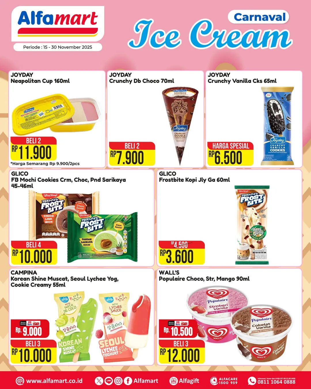 Sampai tanggal 30 November 2025, ada promo Carnaval Ice Cream di Alfamart yang dapat Anda nikmati.