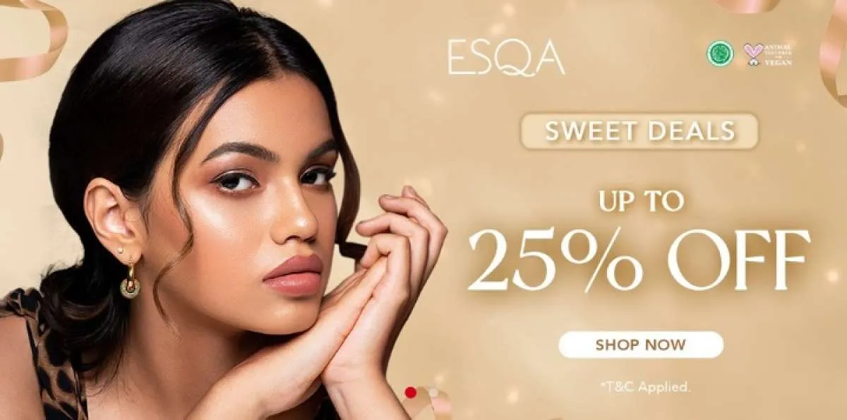 Nah, Moms. Kebetulan sekali, di Shopee Esqa Cosmetics Official Shop sedang ada promo Sweet Deals yang menawarkan Diskon up to 25% Off untuk setiap pembelian produk-produk ESQA yang tersedia.