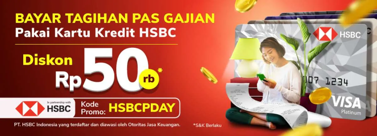 Pada akhir bulan Januari 2022 ini, Tokopedia bekerjasama dengan HSBC untuk menghadirkan promo berupa diskon senilai Rp50.000 untuk pembayaran tagihan menggunakan Kartu Kredit HSBC.