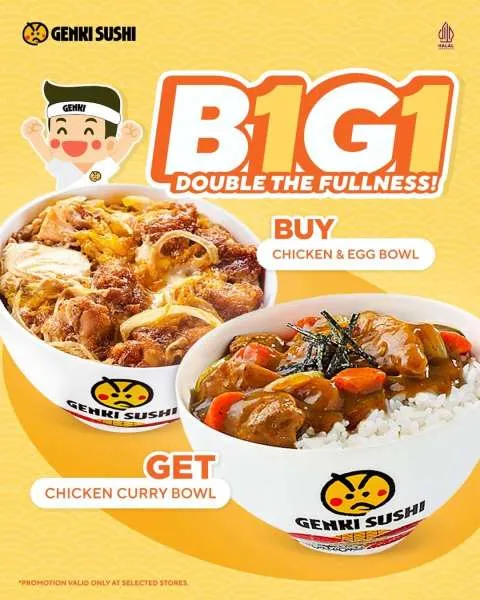 Dikutip dari Instagram @genkisushiindonesia, tiap pembelian Chicken & Egg Bowl, Anda akan mendapatkan gratis Chicken Curry Bowl.