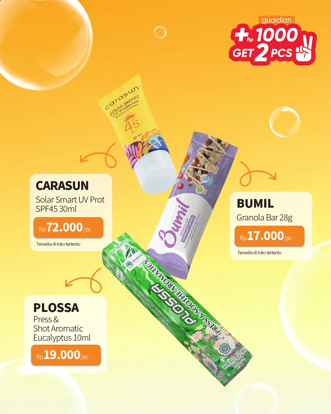 Penawaran menarik dari promo Guardian Super Hemat adalah Anda berhak mendapatkan 2 buah produk apabila menambahkan uang Rp 1.000.