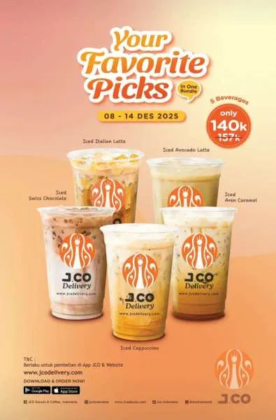 MOMSMONEY.ID - Nikmati promo J.CO dengan bundling minuman hemat hanya sampai 14 Desember 2025. Inilah kesempatan Anda untuk mendapatkan paket minuman favorit mulai Rp 80.000 saja.