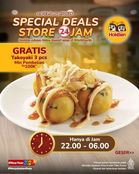 MOMSMONEY.ID -Lapar tengah malam kini tak perlu bingung lagi. Ada HokBen 24 jam yang siap jadi penolong pertama dengan promo Special Deals 24 jam sepanjang Januari 2026.