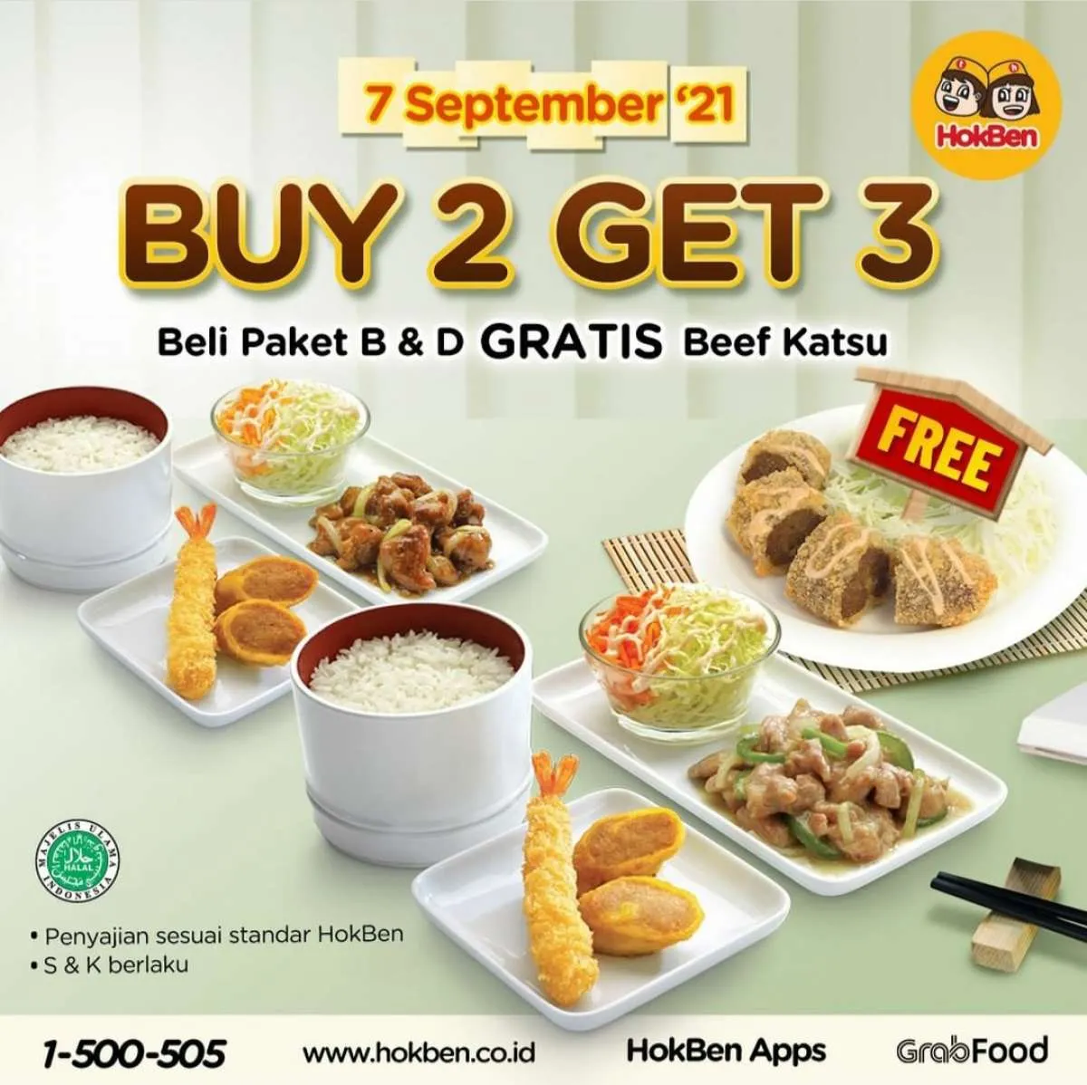 - Beli 2 Paket Hokben (Paket B & D), GRATIS Beef Katsu