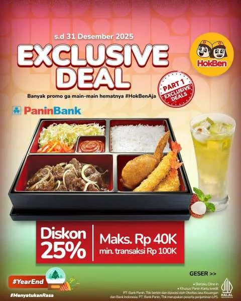 Selain itu, HokBen juga ada promo spesial lainnya dengan Panin Bank. Anda bisa menikmati menu favorit dengan diskon sampai 25% lo.
