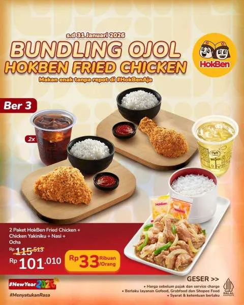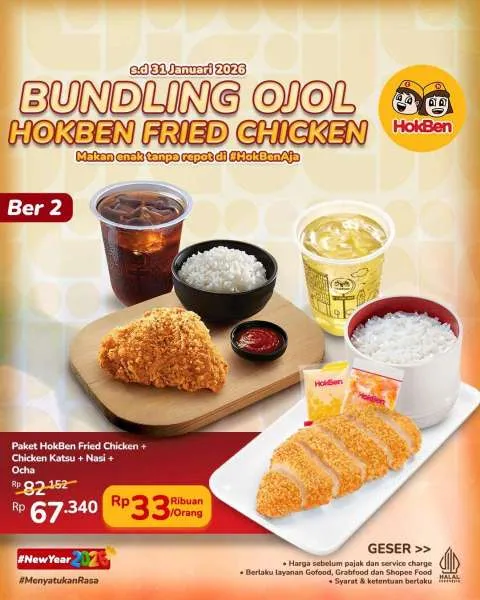 MOMSMONEY.ID - Promo Bundling Ojol HokBen Fried Chicken datang lagi di Januari 2026 ini. Anda bisa kembali menikmati paket HokBen Fried Chicken untuk makan berdua hingga berempat mulai Rp 33.000-an saja per orang.