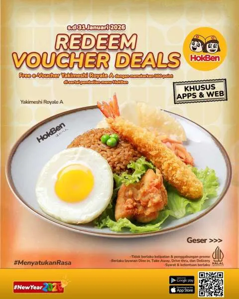 Yuk, serbu promonya sekarang juga pakai aplikasi HokBenAja dan dapatkan menu gratisnya sebelum kehabisan!