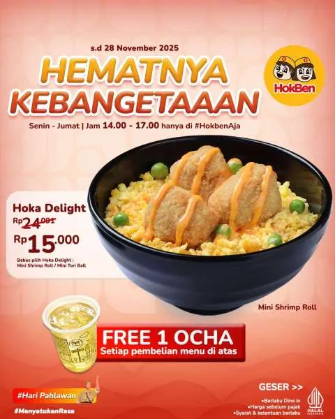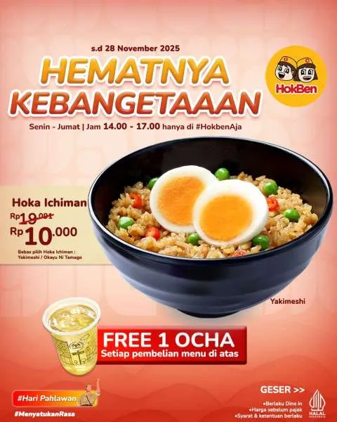 Yuk, serbu promonya sekarang juga di HokBen terdekat dan nikmati menu Hematnya Kebangetan favorit Anda sebelum kelewatan!
