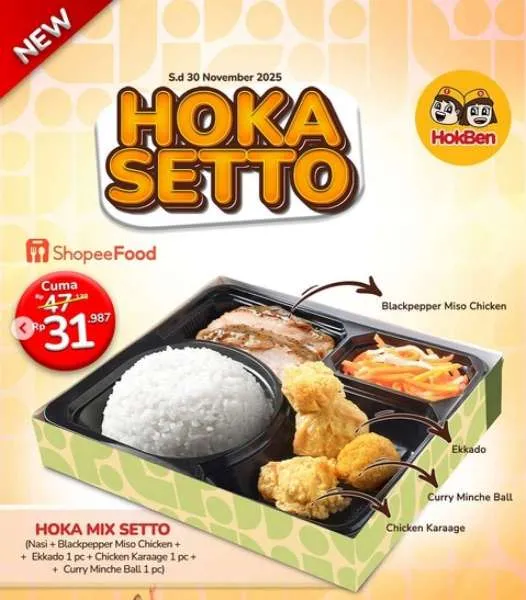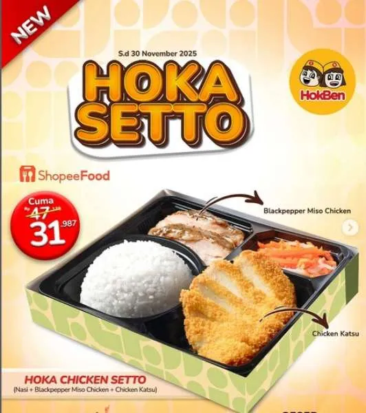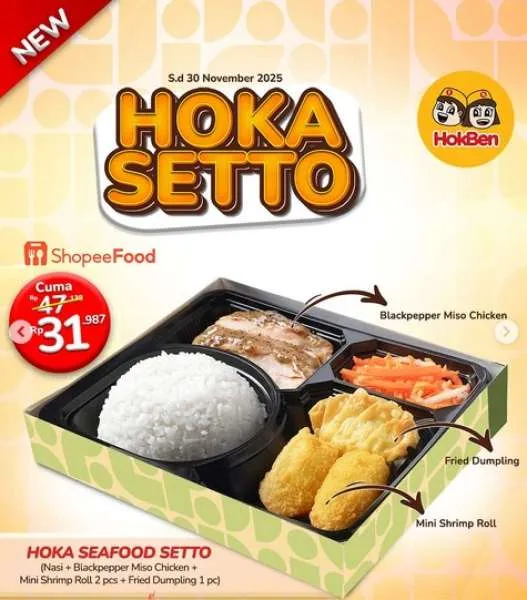 MOMSMONEY.ID - Ada yang baru dari Promo HokBen nih. Anda kini bisa merasakan kelezatan Hoka Setto dengan promo spesialnya bersama ShopeeFood selama November 2025. Tersedia tiga varian lezat serba Rp 31.000-an saja.