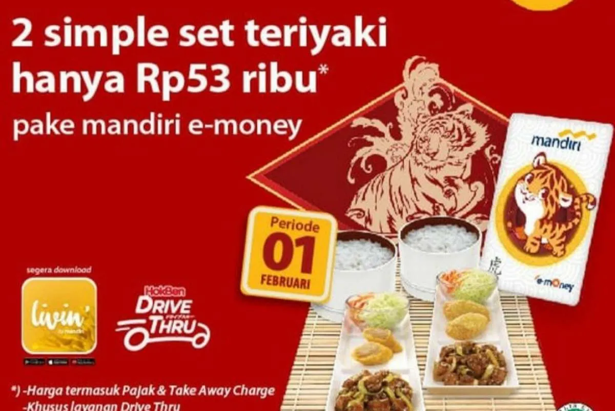 Melansir dari Instagram @hokben_id, promo Hokben Spesial Imlek kali ini menawarkan promo berupa: 2 Simple Set Chicken Teriyaki dengan harga Rp 53.000.