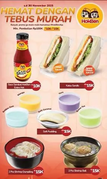 Yuk, serbu promonya sekarang juga di HokBen terdekat dan nikmati menu tebus murah favorit Anda sebelum kehabisan!