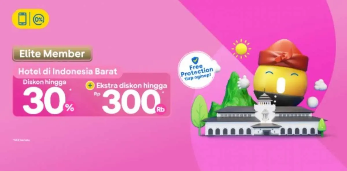 - Diskon hingga 30% berlaku untuk hotel pilihan di Sumatera, Jawa Barat, Jabodetabeka, Kalimantan, Jawa Tengah, dan Yogyakarta, Indonesia, sesuai dengan kebijakan masing-masing hotel.