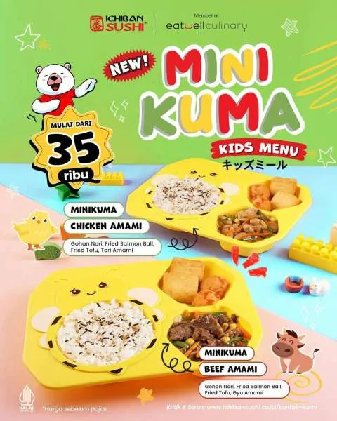 Dikutip dari Instagram Ichiban Sushi Indonesia, menu Mini Kuma menyediakan dua pilihan menu mulai Rp 35.000 berikut: