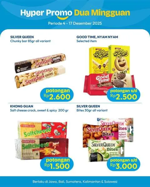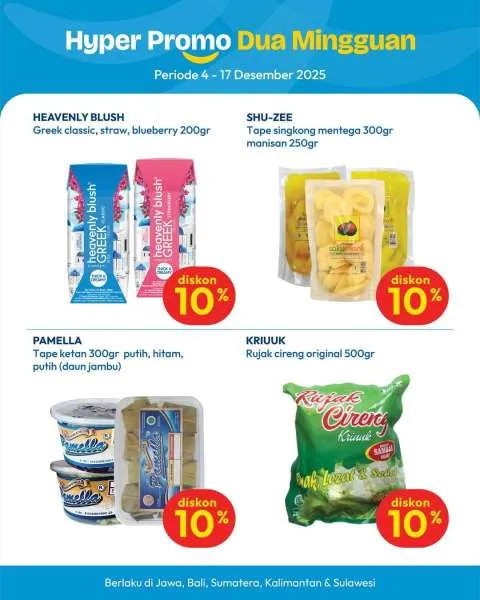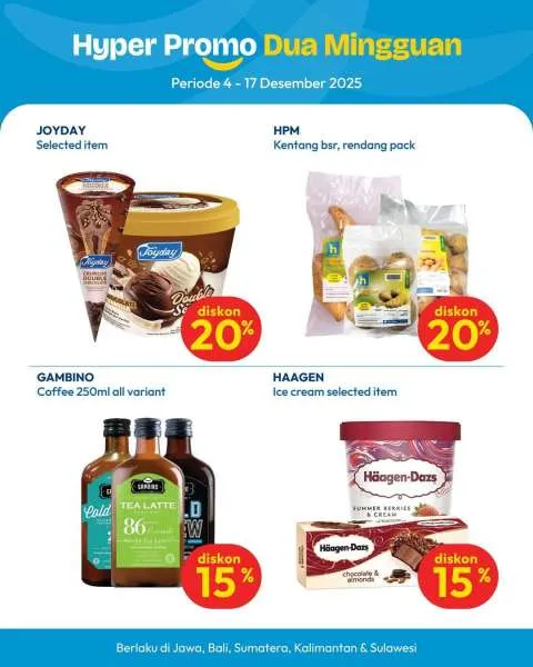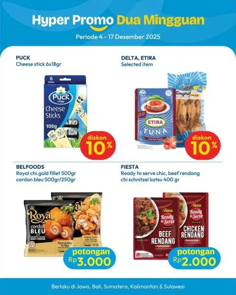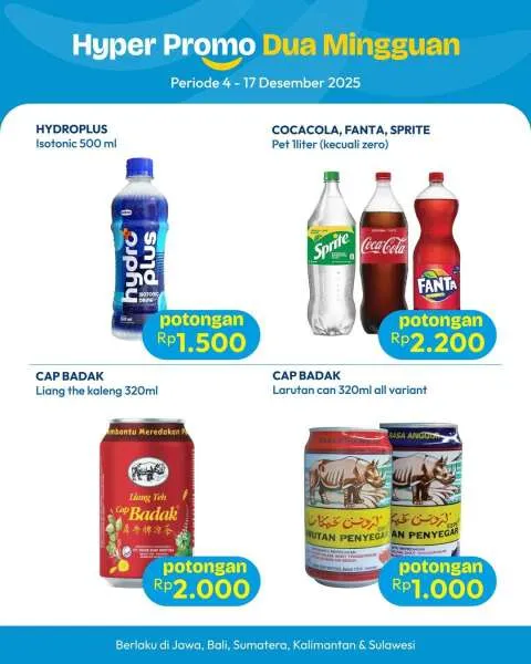 Promo Hypermart Hyper Promo Dua Mingguan periode 4-17 Desember 2025 ini berlaku di Jawa, Bali, Sumatera, Kalimantan, dan Sulawesi.