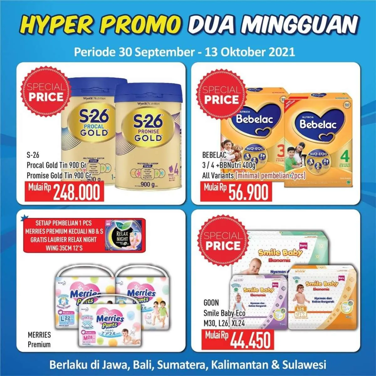 Promo Hyper Promo Dua Mingguan ini berlaku di Hypermart wilayah Jawa, Bali, Sumatera, Kalimantan, dan Sulawesi.