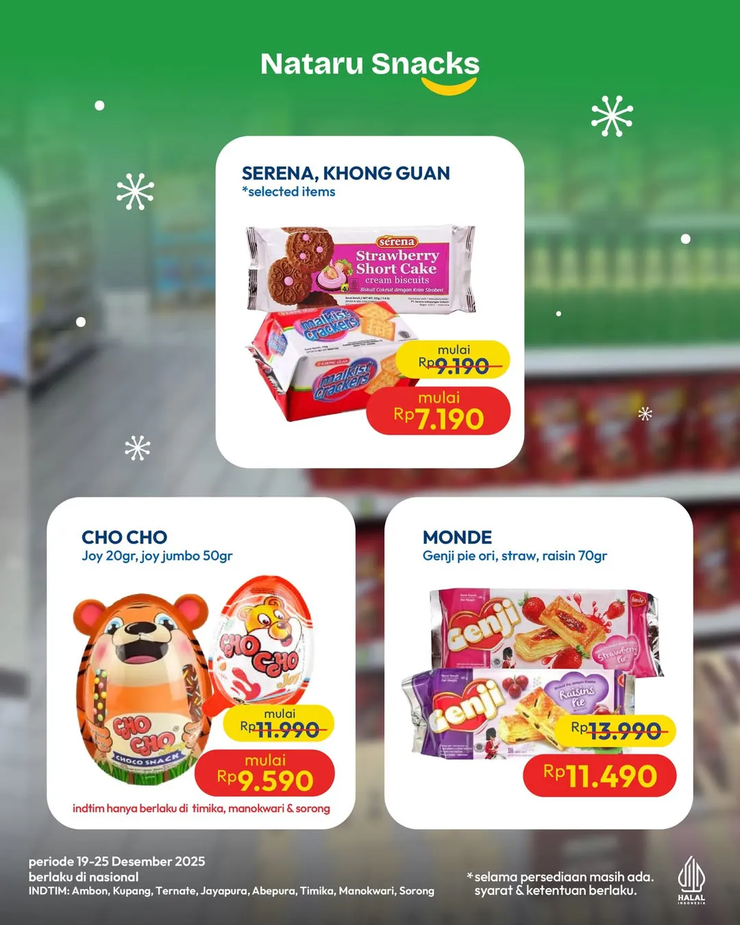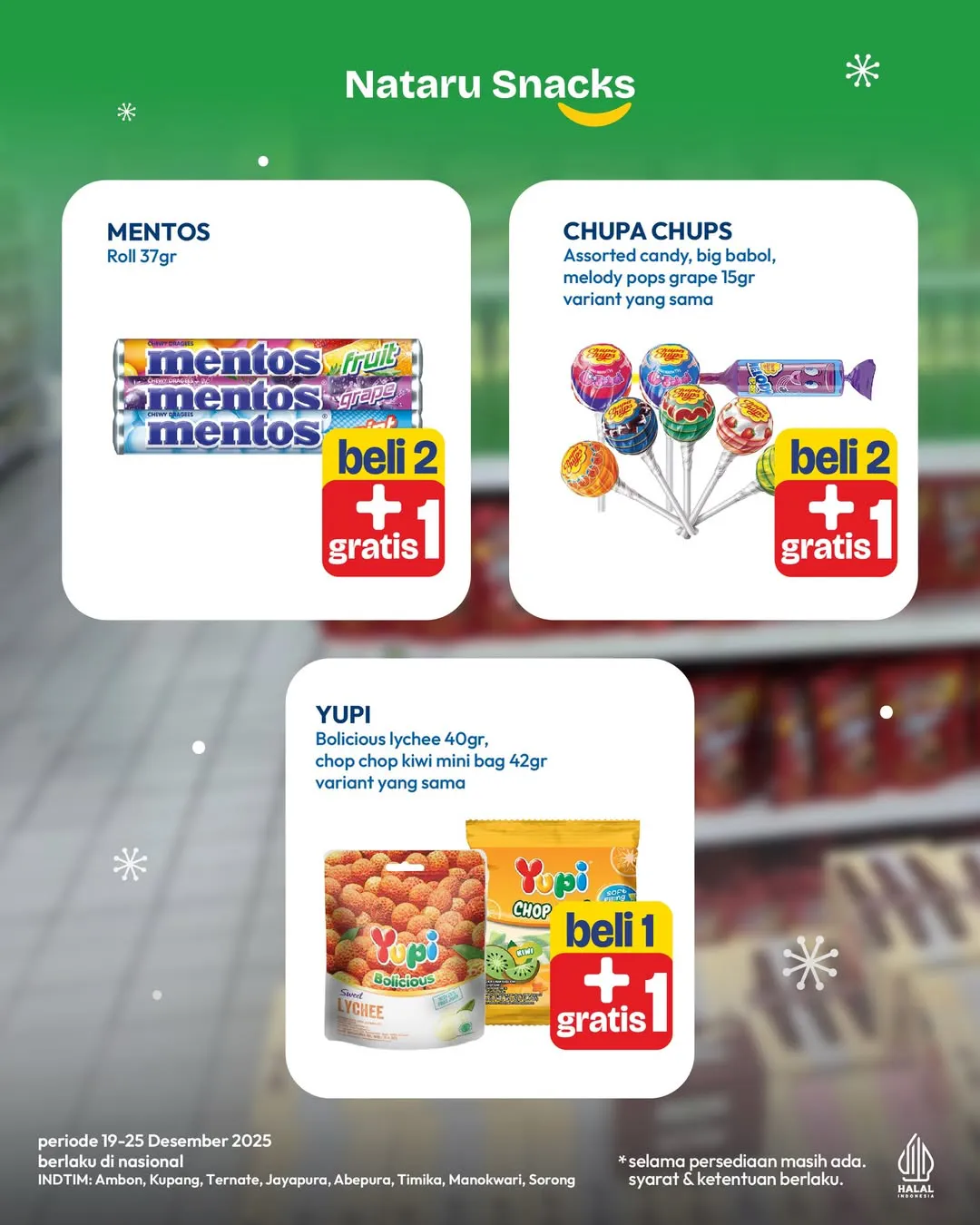 Selama 19-25 Desember 2025, Hypermart mengadakan promo Spesial Nataru. Promo ini menawarkan potongan harga lebih hemat untuk berbagai camilan. Ada juga Beli 1 Gratis 1 dan Beli 2 Gratis 1.