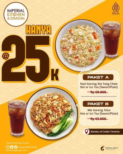 Dikutip dari Instagram Imperial Kitchen Indonesia, hanya dengan Rp 25.000, Anda bisa menikmati dua pilihan paket hemat, yang harga normalnya Rp 60.000-an berikut: