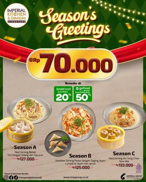 Dikutip dari Instagram @imperialkitchenid, berikut daftar menu hemat dalam promo Season's Greetings yang bisa Anda nikmati: