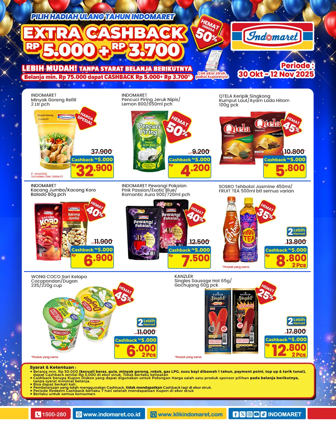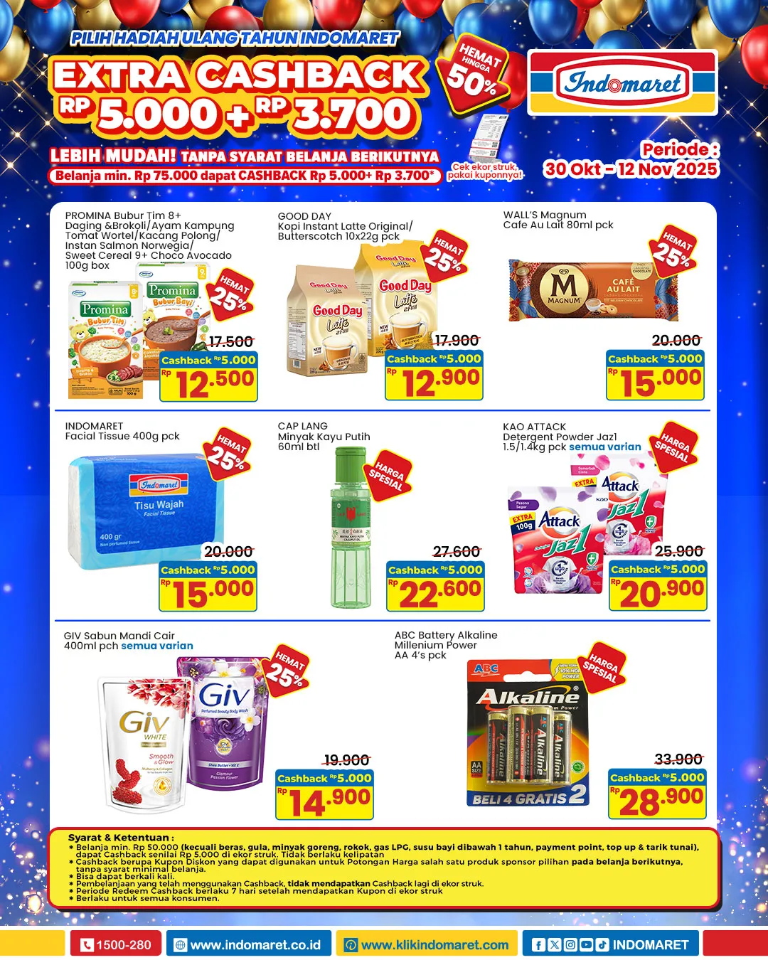 Itulah berbagai produk yang ditawarkan dalam Promo Indomaret Spesial Ulang Tahun Periode 30 Oktober-12 November 2025 yang bisa Anda manfaatkan dengan baik.