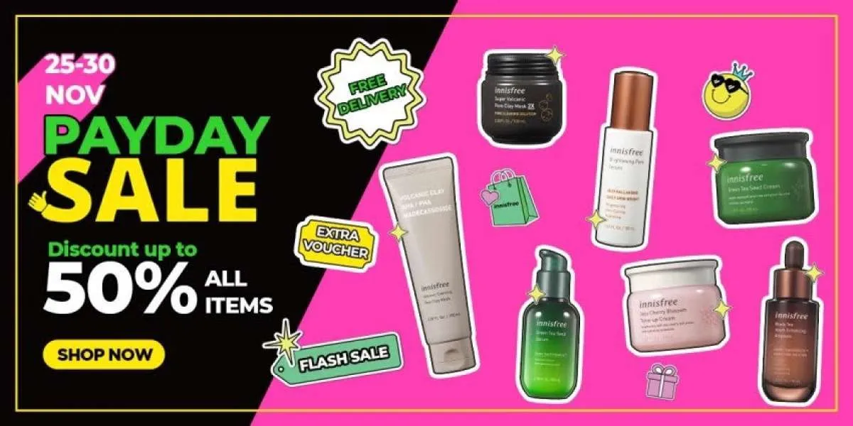 Di Tokopedia Innisfree Official Shop, sedang ada promo spesial edisi gajian bernama Payday Sale yang berlangsung 25-30 November 2021.
