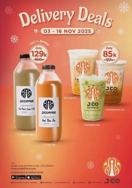 MOMSMONEY.ID - Nikmati promo J.CO Delivery Deals bundling minuman favorit di J.CO sekarang juga. Tersedia beragam varian paket minuman yang lebih hemat untuk Anda nikmati sampai 16 November 2025 saja.