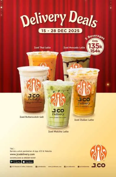 MOMSMONEY.ID - Di pertengahan bulan Desember ini, J.CO hadirkan promo Delivery Deals yang hemat banget lo. Ada paket minuman favorit untuk berdua sampai berlima mulai Rp 45.000 saja.