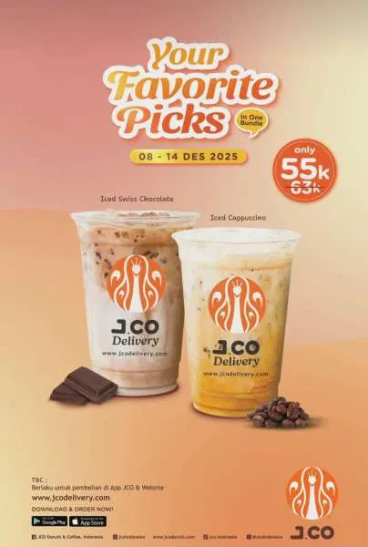 MOMSMONEY.ID - Cek promo Your Favorit Picks di J.CO sekarang juga! Anda bisa menikmati paket dua minuman favorit hanya Rp 55.000 saja mulai 8-14 Desember 2025.