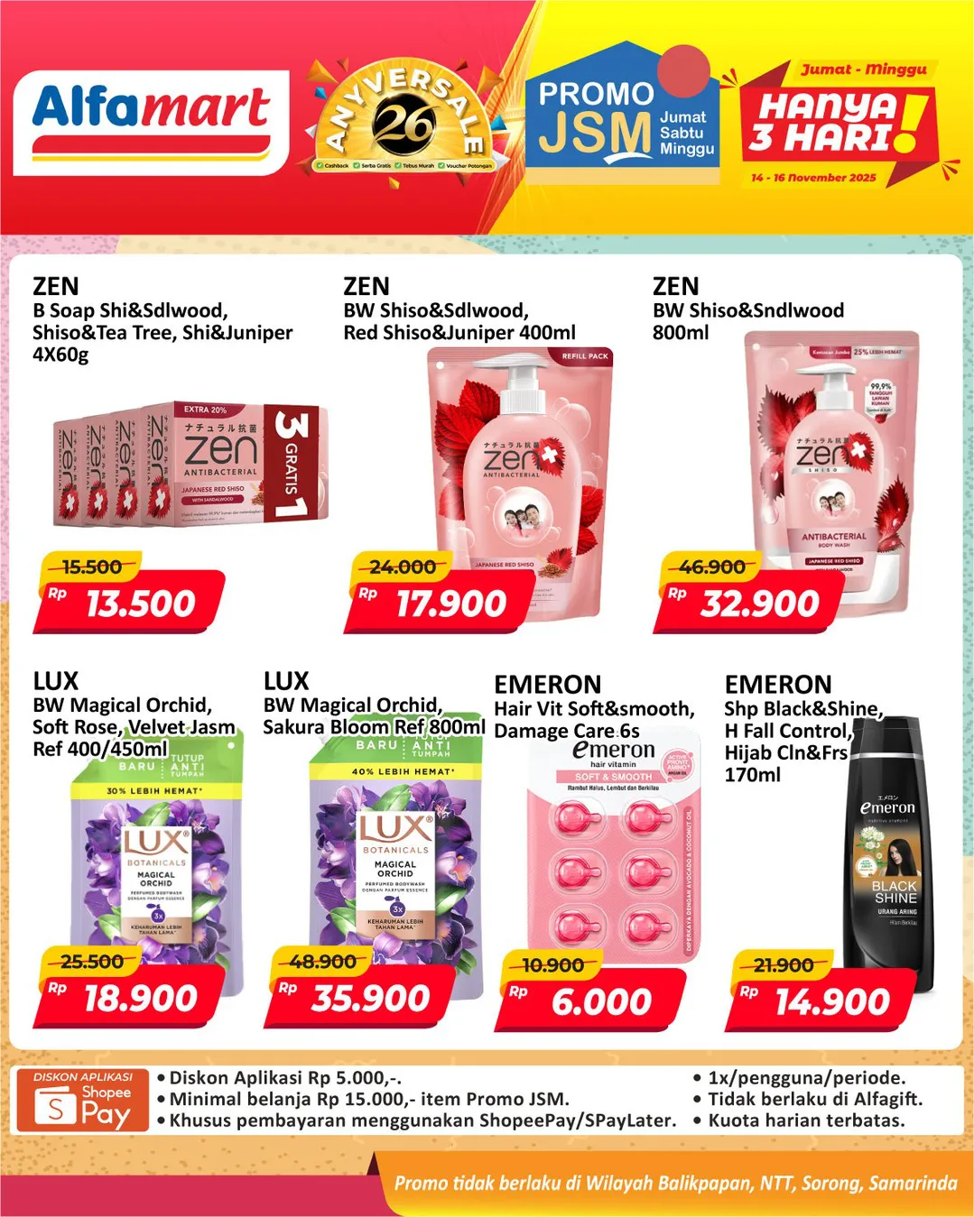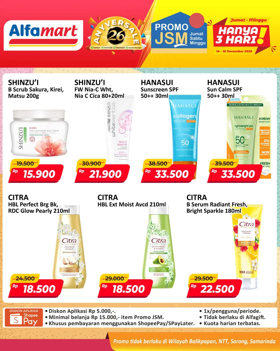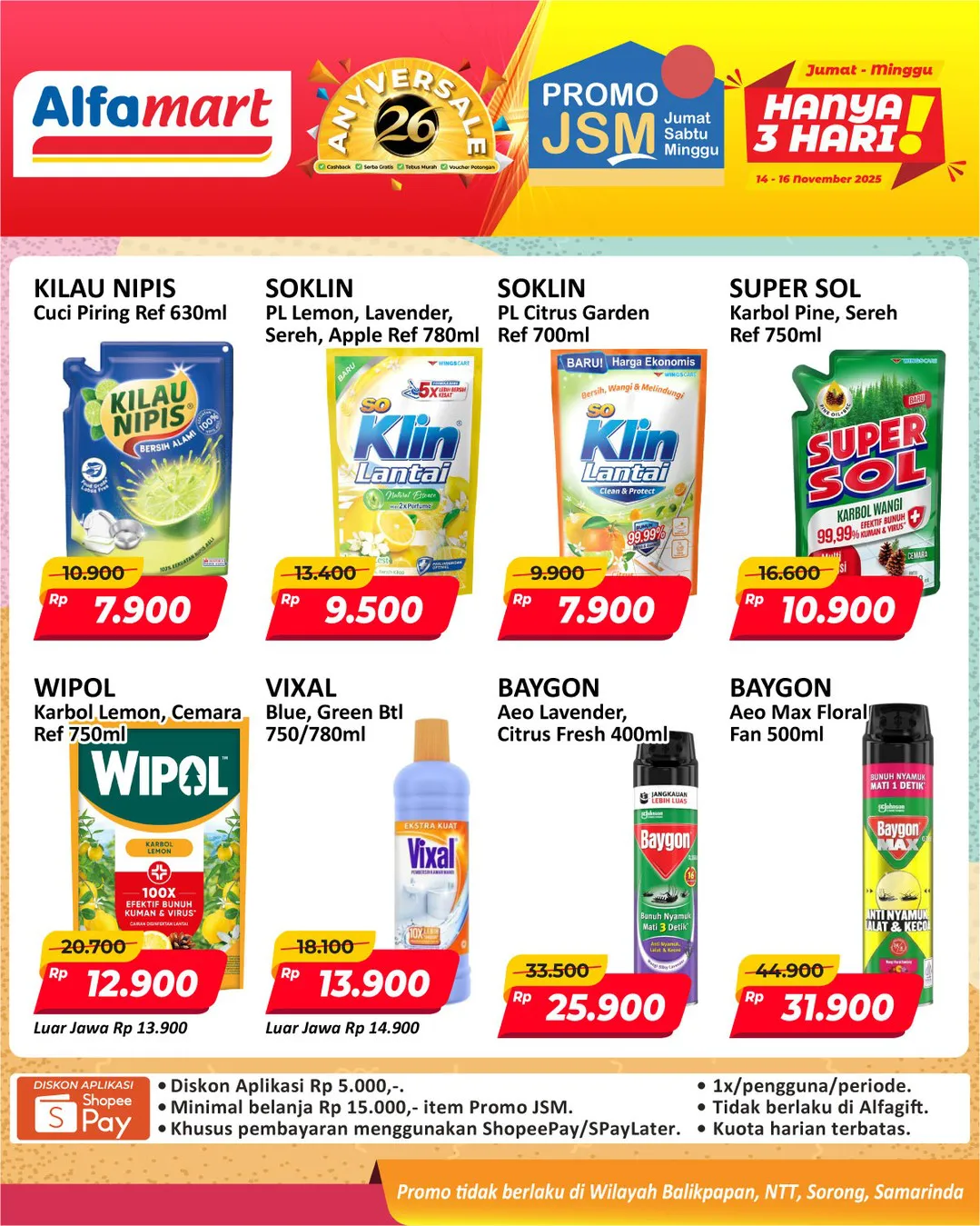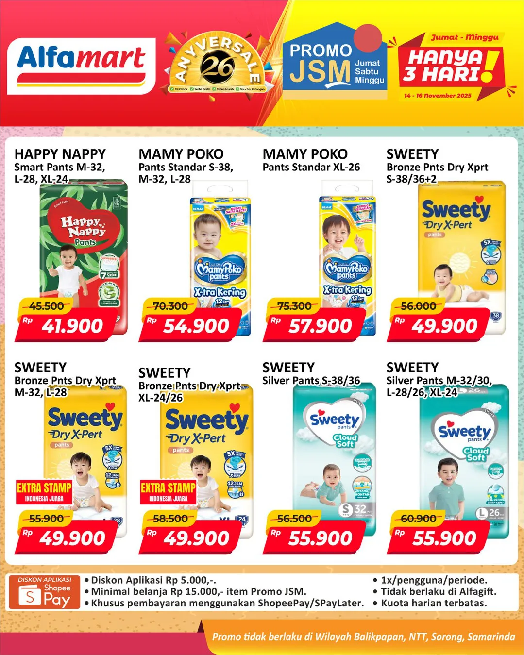 Harga promo JSM Alfamart periode 14-16 November 2025 tidak berlaku di wilayah NTT, Balikpapan, Samarinda dan Sorong ya, Moms.