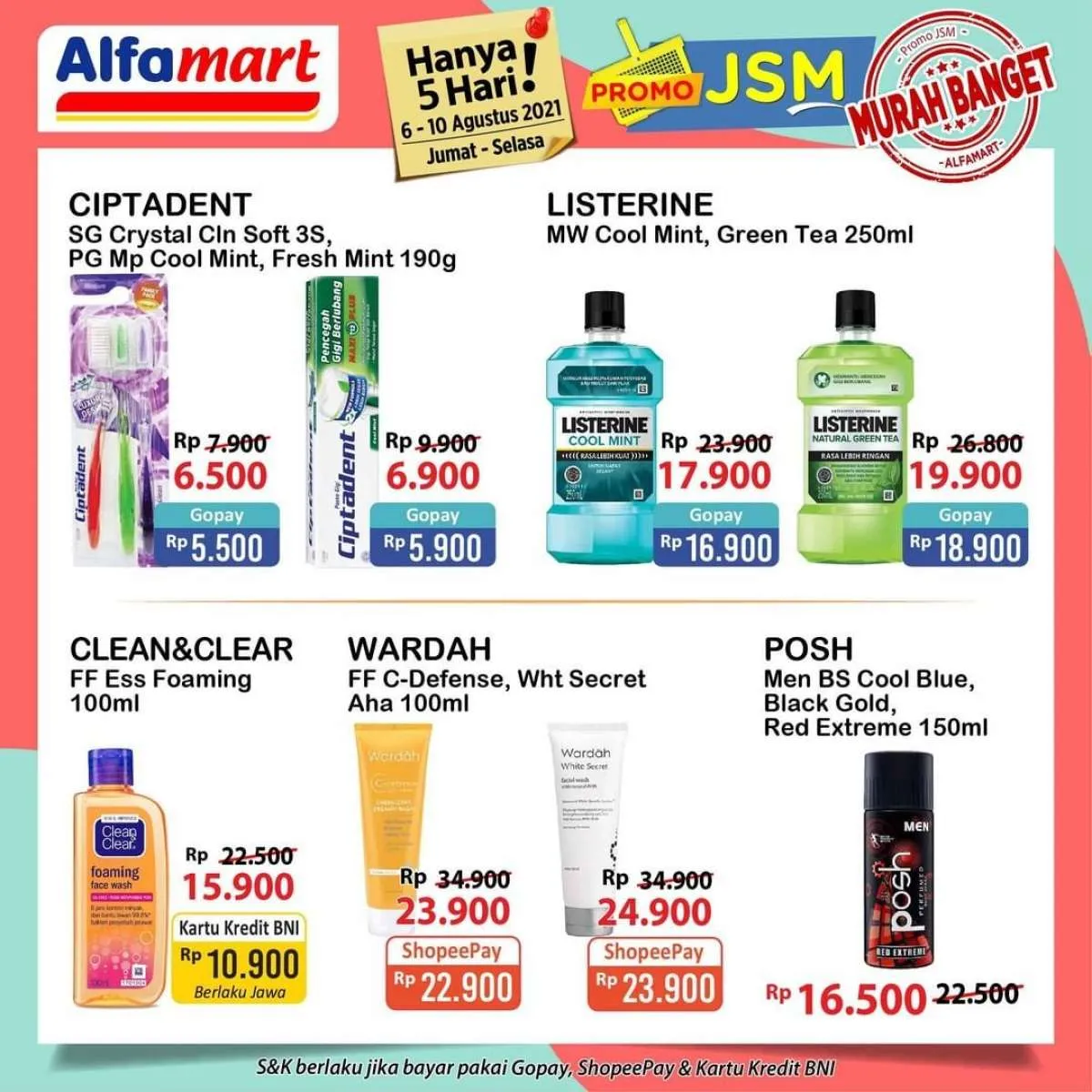 Di minggu pertama bulan Agustus, promo JSM Alfamart berlaku selama 5 hari mulai hari ini tanggal 6 s/d hari Selasa nanti tanggal 10 Agustus 2021.
