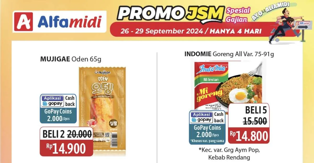 Pada tanggal 26-29 September 2024, ada promo JSM Alfamidi Spesial Gajian Hanya 4 Hari yang dapat Anda manfaatkan dengan baik. Dengan potongan harga yang menarik, promo Alfamidi ini akan membuat kegiatan belanja keluarga menjadi jauh lebih hemat.