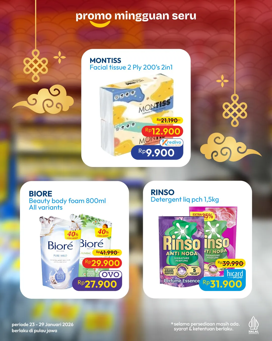 Promo ini menawarkan potongan harga lumayan untuk berbagai bahan makanan dan minuman, perlengkapan dapur, produk personal care, hingga produk khusus anak.