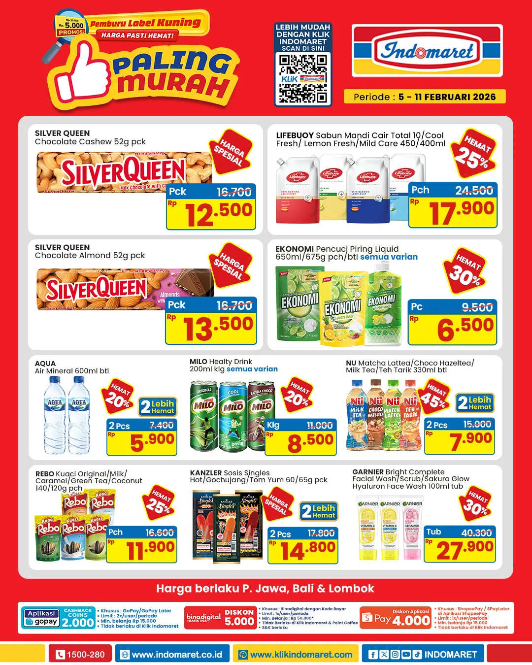 - Minimal belanja Rp 50.000, limit maks. 1 (satu) kali/user/periode, tidak berlaku di Klik Indomaret