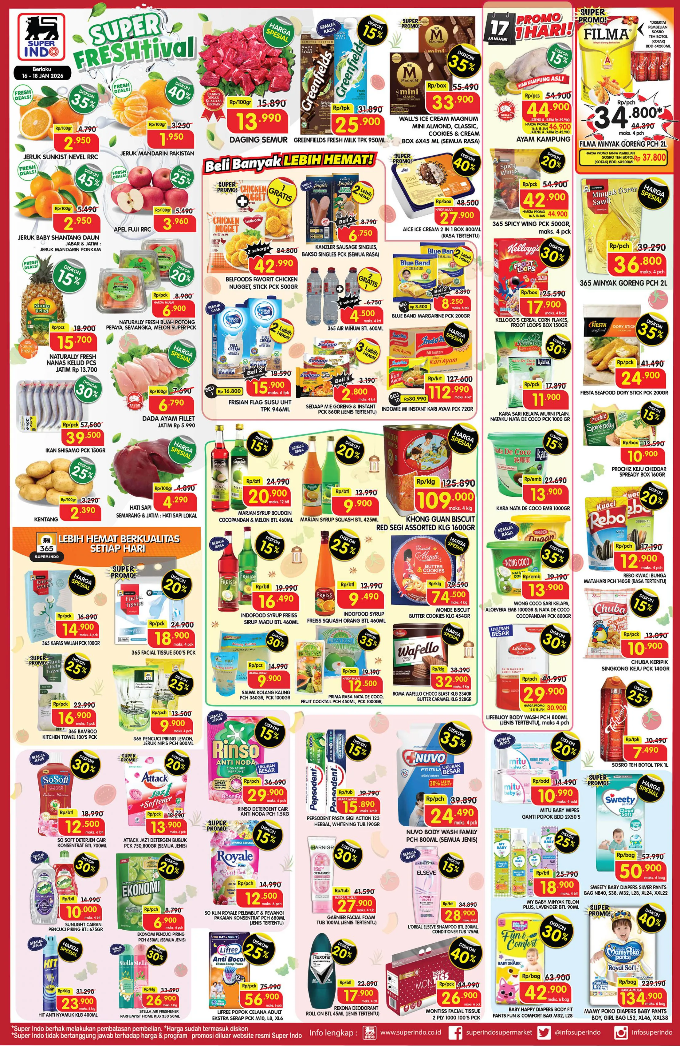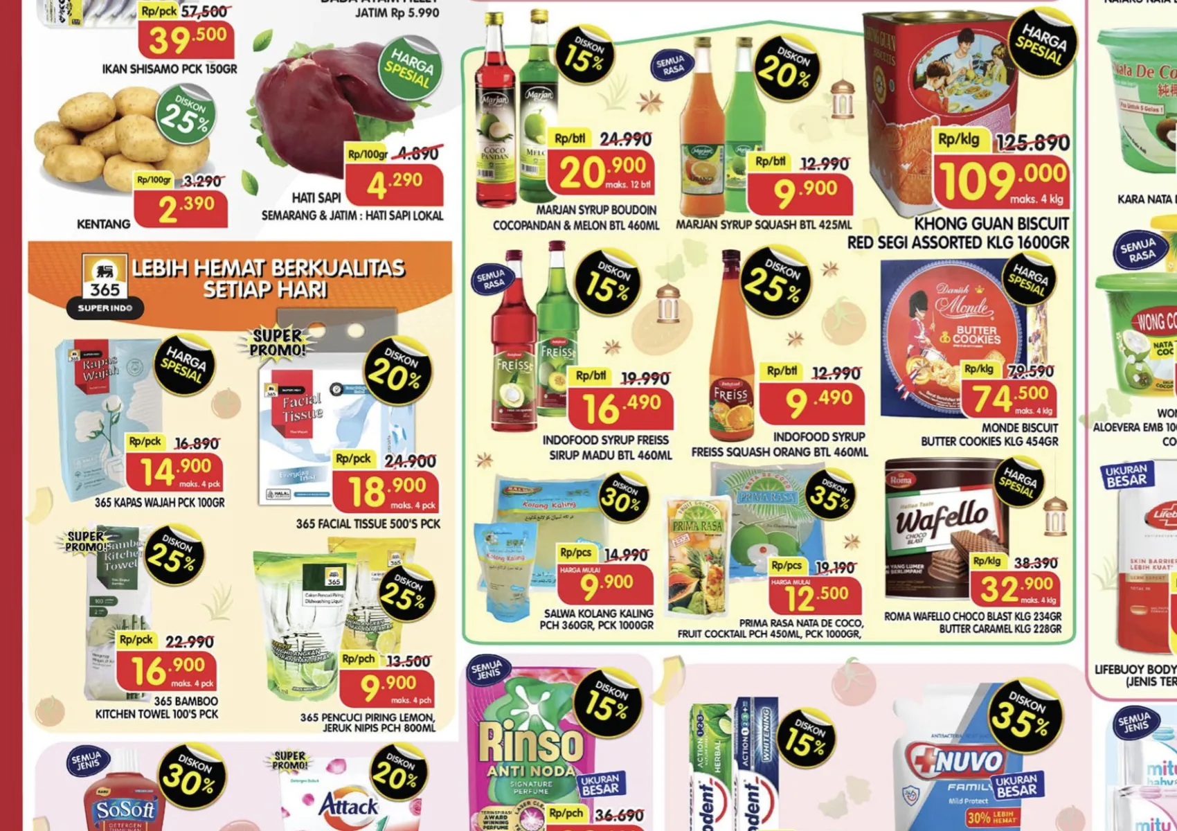 Harga Spesial di promo JSM Superindo hari ini ada Dada Ayam Fillet, Hati Sapi, 365 Kapas Wajah, Monde Butter Cookies, Khong Guan, Wafello Kaleng, Daging Semur, Indomie, dan Sweety Diapers.