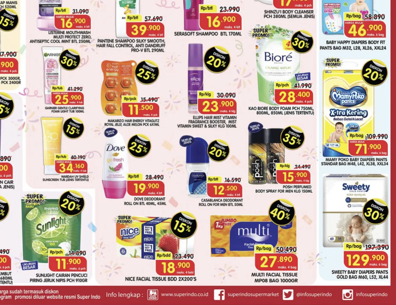 Pada akhir pekan ini, 19-21 Desember 2025, di Superindo terdekat juga ada promo JSM Superindo yang menawarkan Diskon sampai 40% untuk berbagai produk. Berikut beberapa di antaranya: