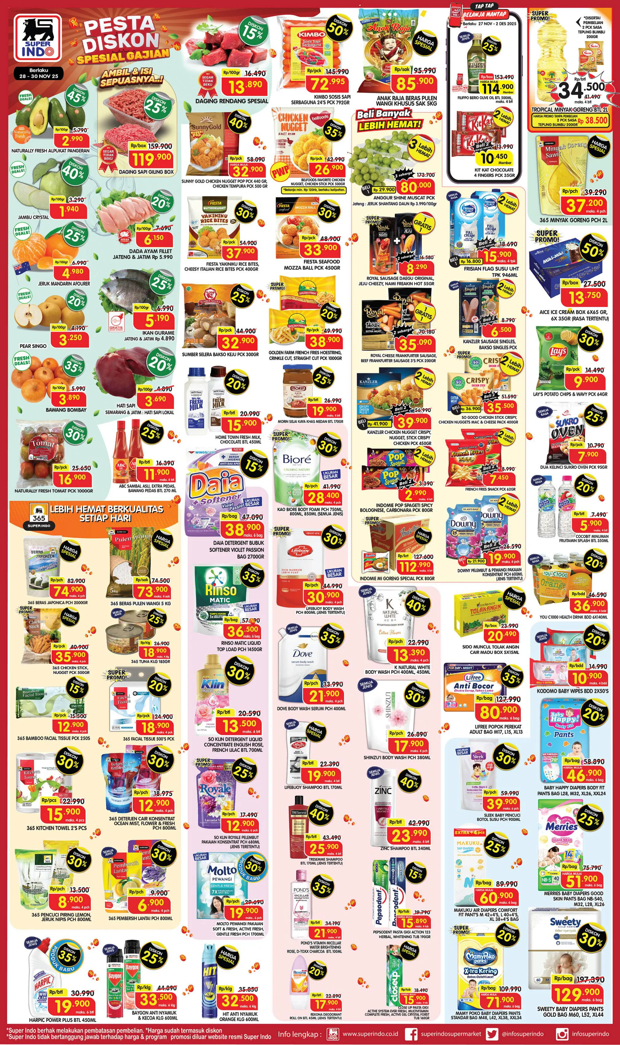 Pada akhir pekan ini, 28-30 November 2025, di Superindo terdekat juga ada promo JSM Superindo yang menawarkan Diskon sampai 50% untuk berbagai produk. Berikut beberapa di antaranya: