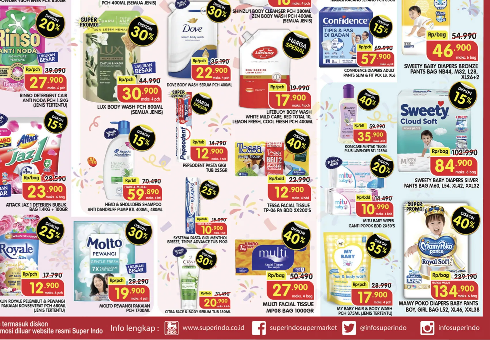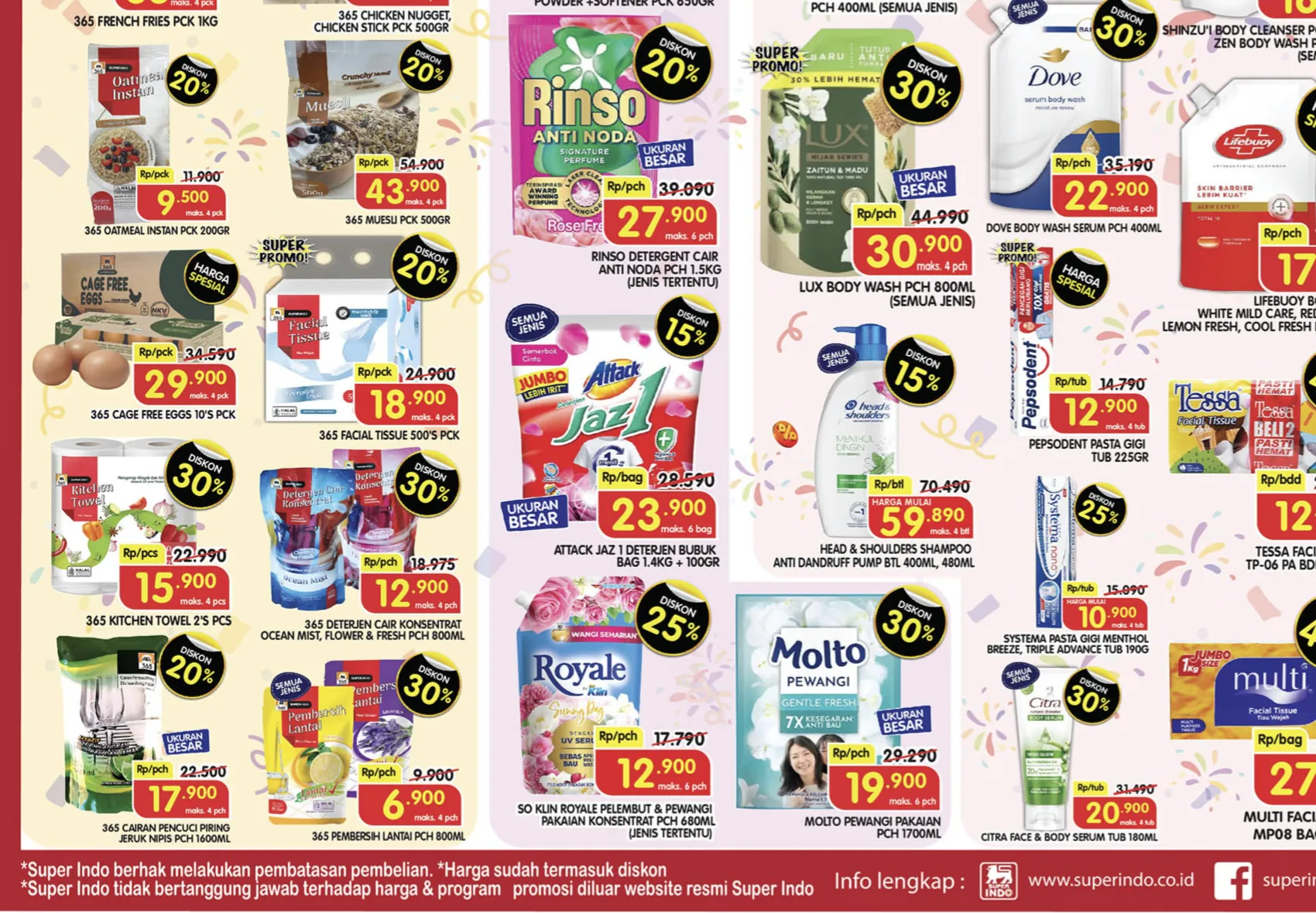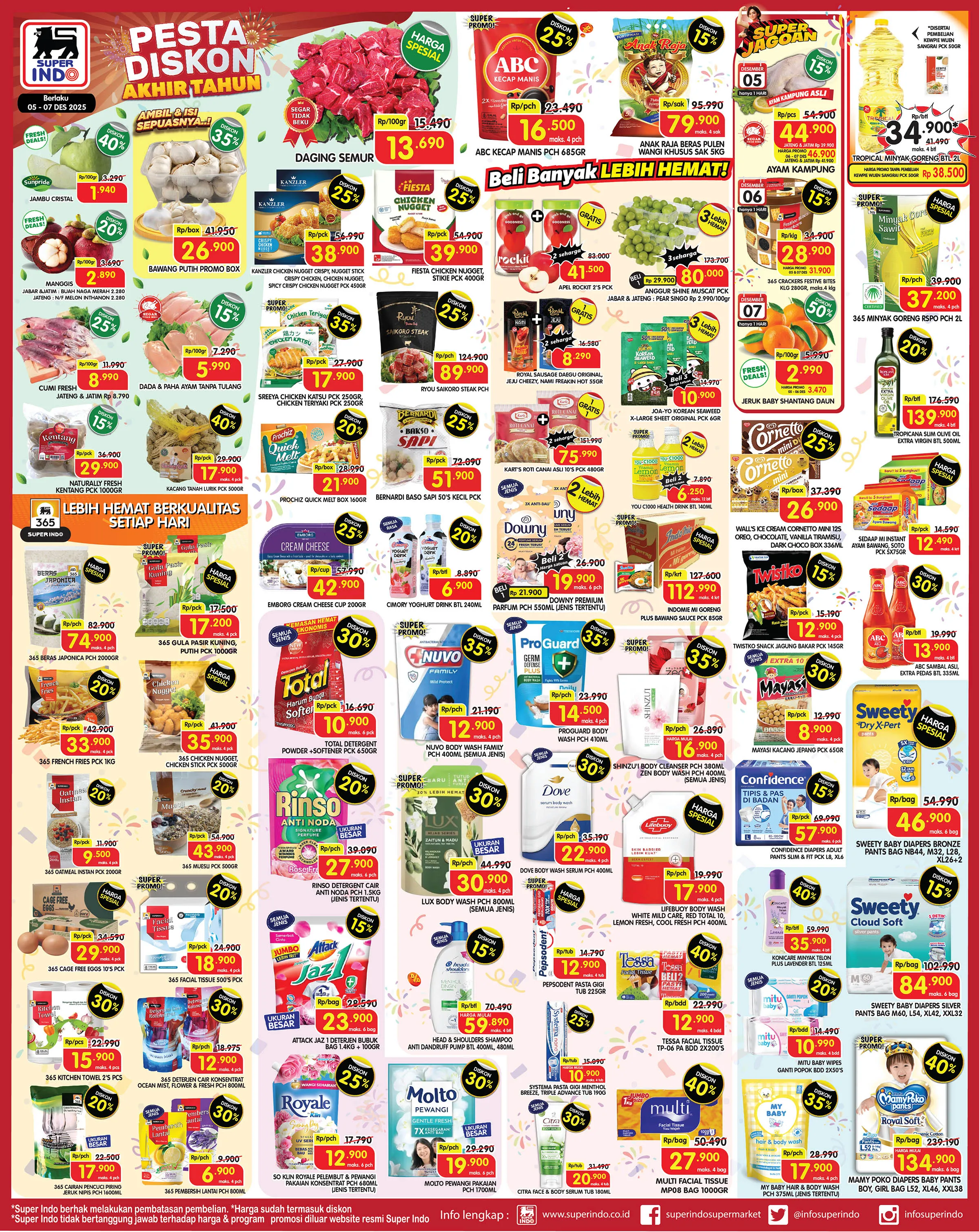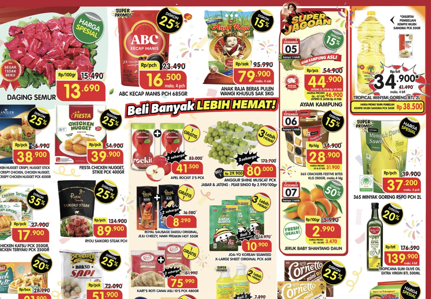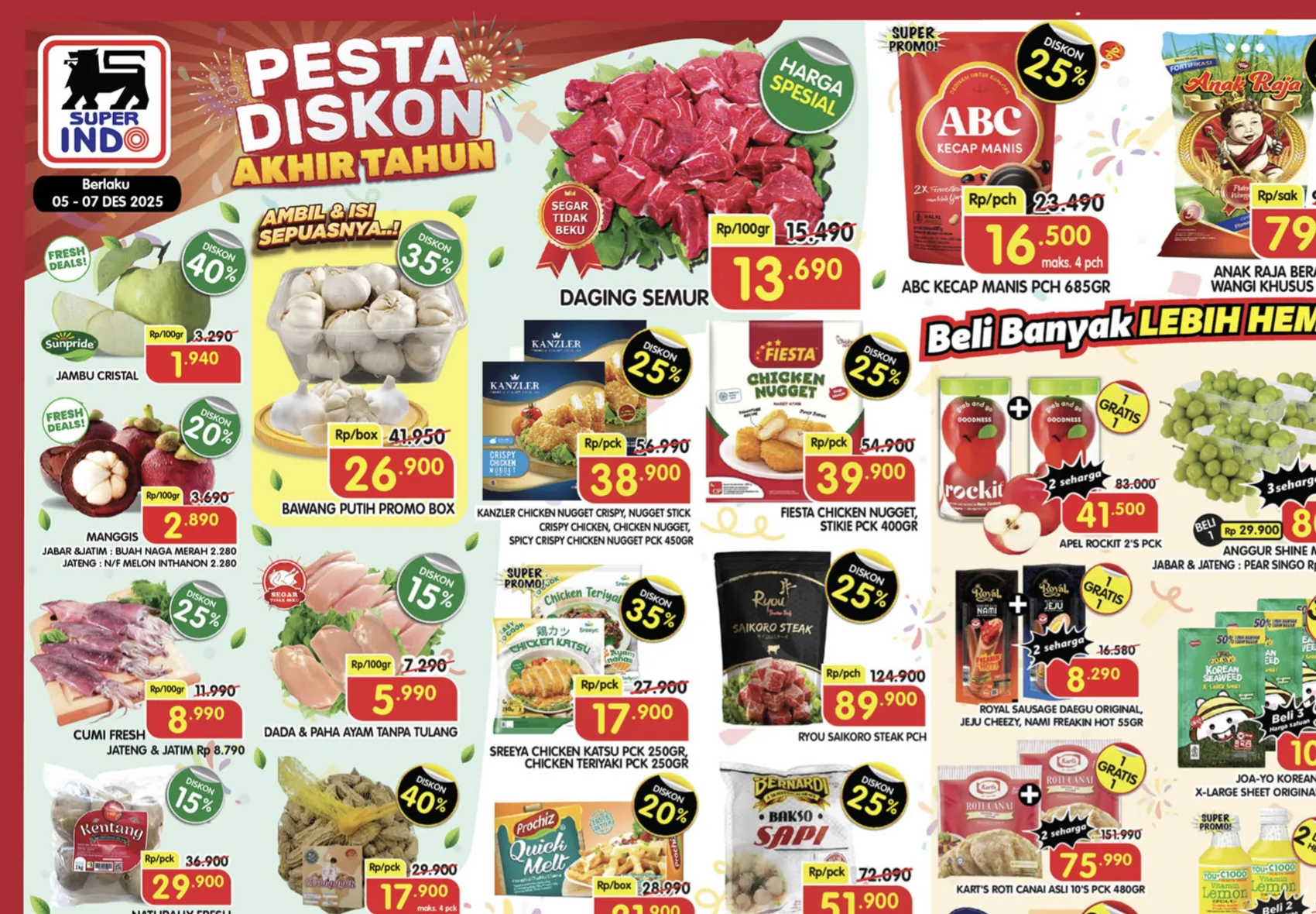 Pada akhir pekan ini, 5-7 Desember 2025, di Superindo terdekat juga ada promo JSM Superindo yang menawarkan Diskon sampai 50% untuk berbagai produk. Berikut beberapa di antaranya: