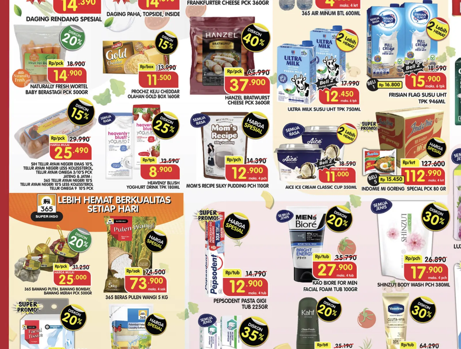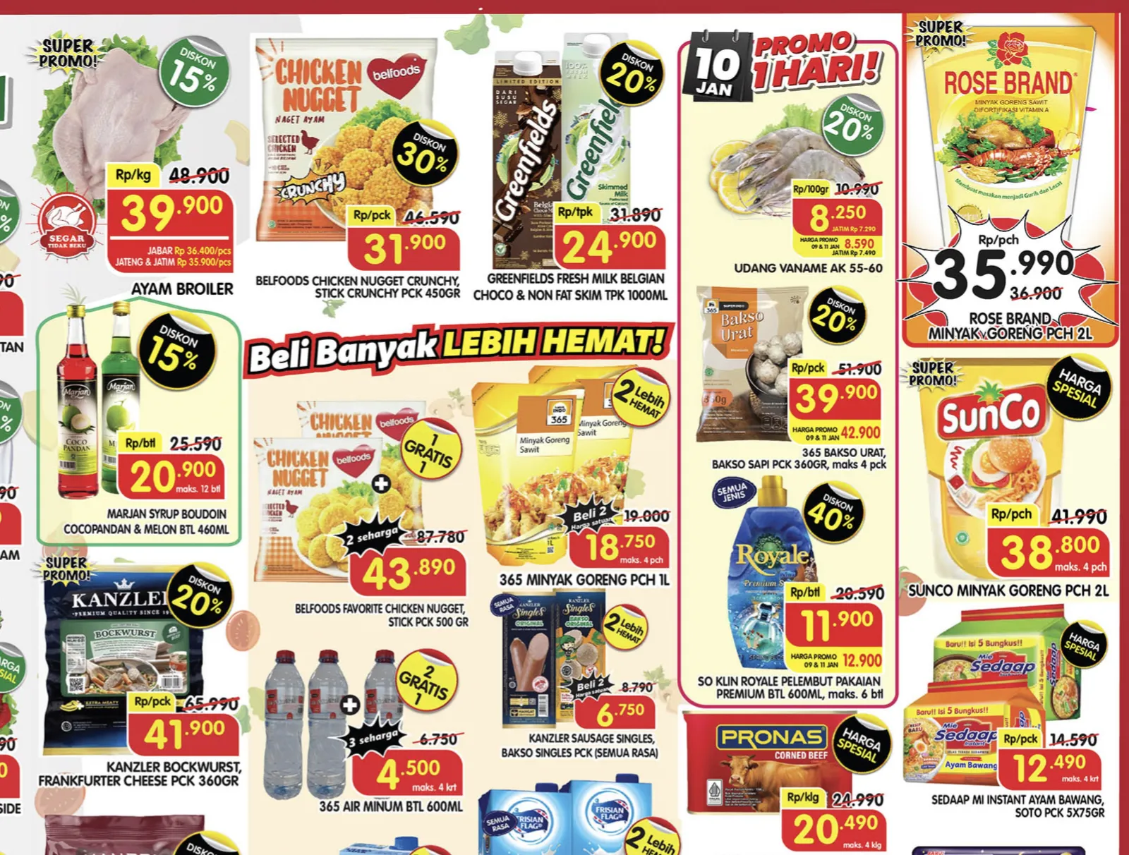 Pada akhir pekan ini, 9-11 Januari 2026, di Superindo terdekat juga ada promo JSM Superindo yang menawarkan Diskon sampai 60% untuk berbagai produk. Berikut beberapa di antaranya: