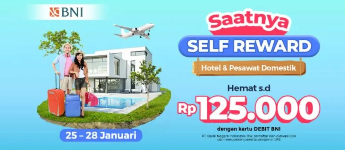 MOMSMONEY.ID - Hari terakhir! Khusus pengguna kartu debit BNI, dapatkan diskon hotel dan tiket pesawat domestik sampai Rp125.000 dari Mister Aladin. Tunggu apalagi? Saatnya manjakan diri sendiri. Berikut syarat dan ketentuan yang harus Anda pahami, dilansir dari misteraladin.com, yaitu: