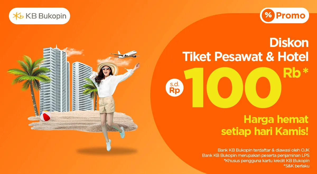 MOMSMONEY.ID - Bagi anda pengguna kartu kredit KB Bukopin, anda bisa mendapatkan diskon tiket pesawat dan hotel sampai dengan Rp 100.000.